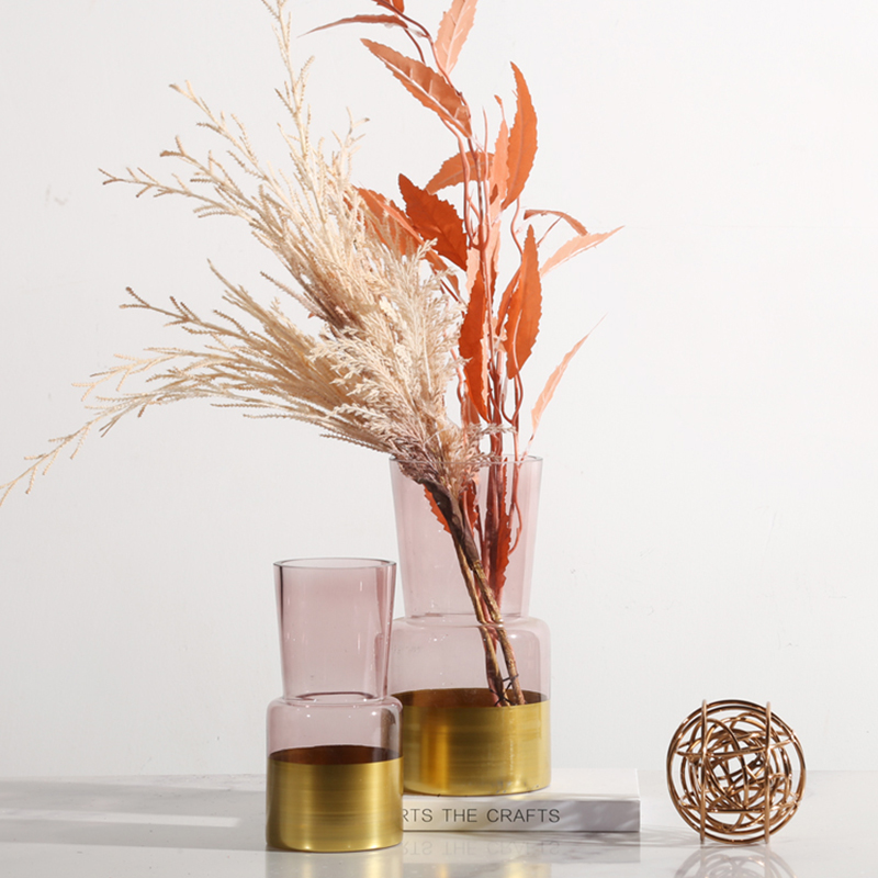 粉红色玻璃花瓶摆件客厅插花水培装饰品