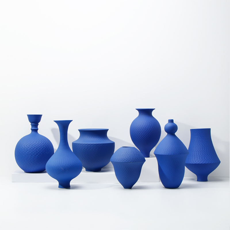 现代简约克莱因蓝色新中式陶瓷花器摆件装饰品