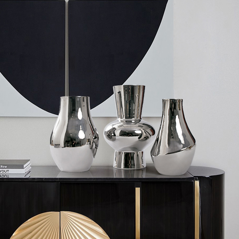 现代轻奢电镀银色陶瓷花瓶干花简约花器工艺品北欧摆件