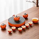 家用客厅简约轻奢柿柿如意功夫茶具套装陶瓷茶杯茶壶茶盘整套