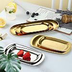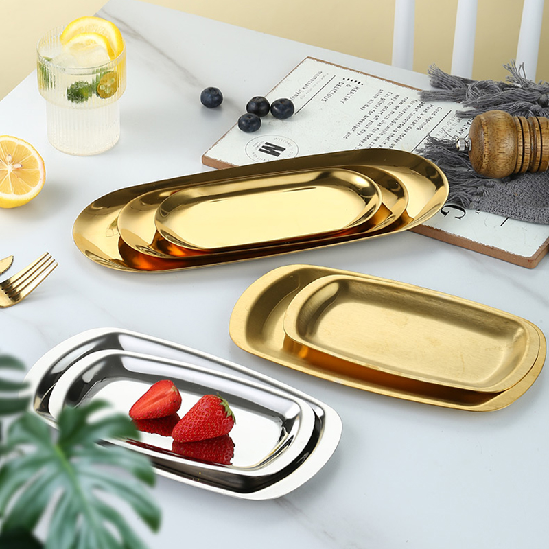 北欧不锈钢椭圆盘酒店甜品糕点盘韩国金色托盘