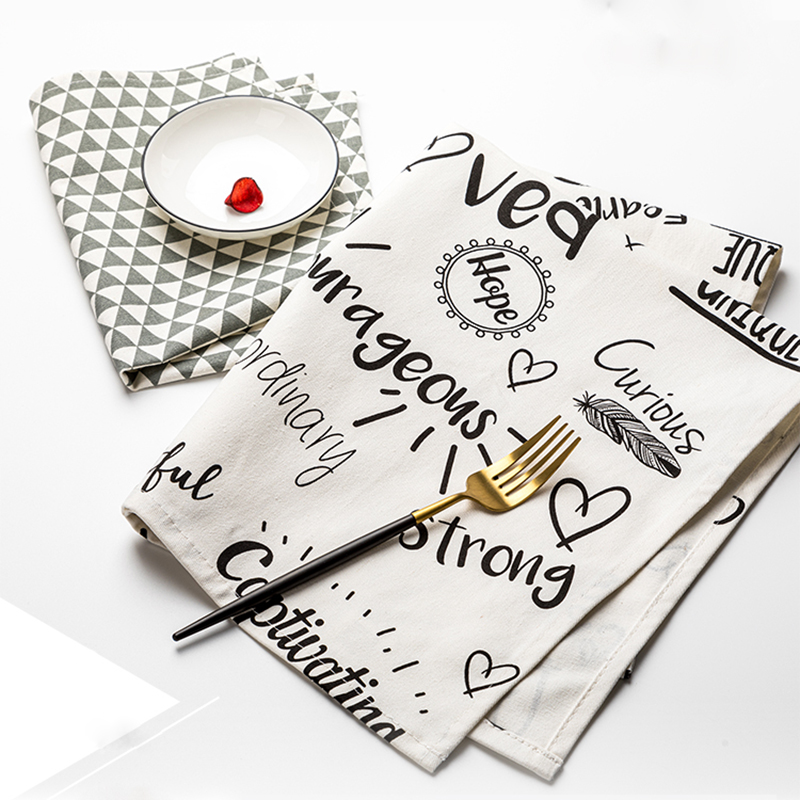 北欧几何黑布艺白棉麻口布现代茶几桌布西餐垫