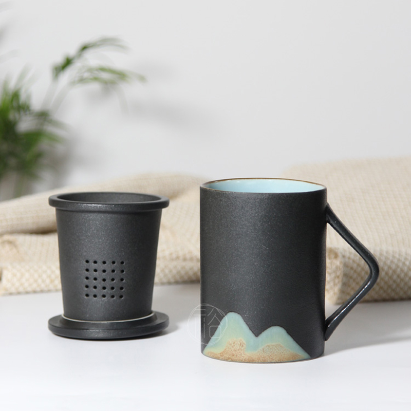 日式马克杯子陶瓷杯带盖过滤泡茶杯茶水分离杯