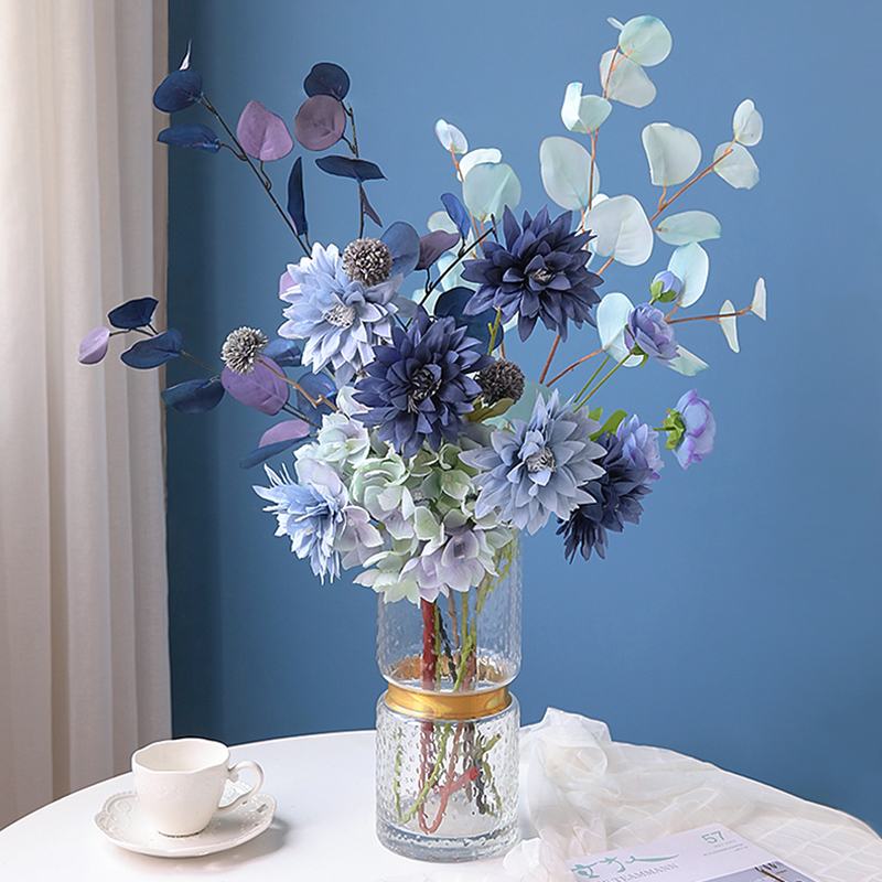 蓝色系仿真花假花室内客厅装饰花摆件