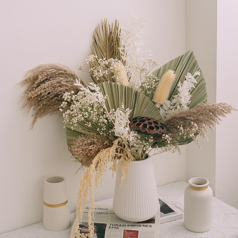 满天星芦苇蒲扇干花花束ins摆件