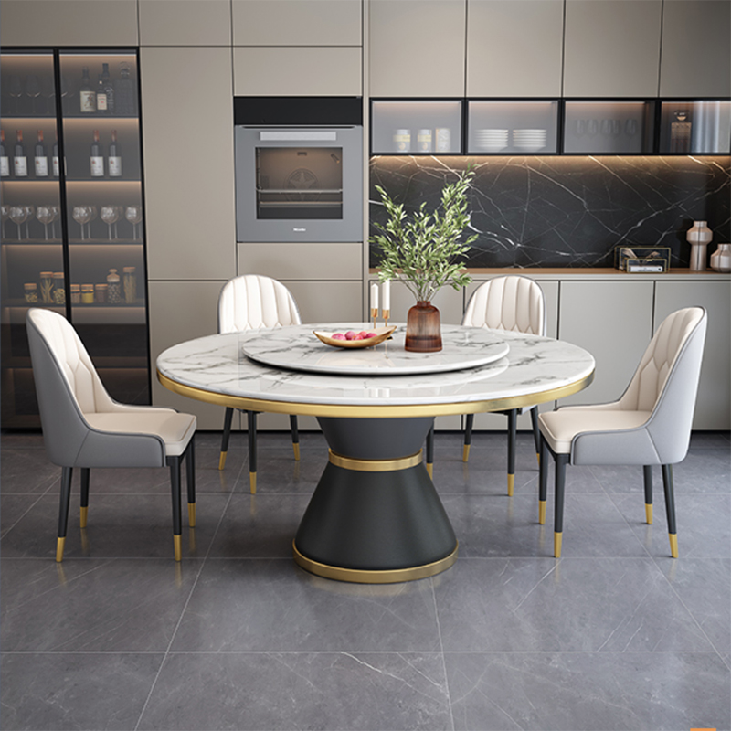 轻奢风大理石餐桌椅组合家用酒店大圆桌