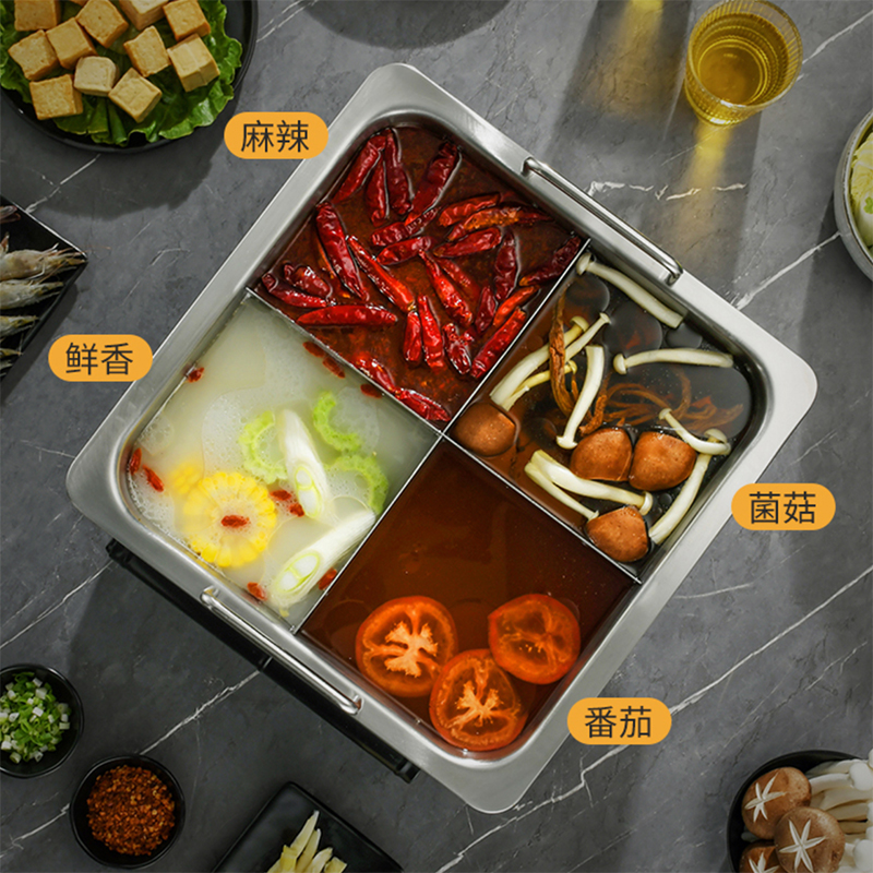 家用正方形四方锅火锅盆鸳鸯十字带提手巴奴商用火锅