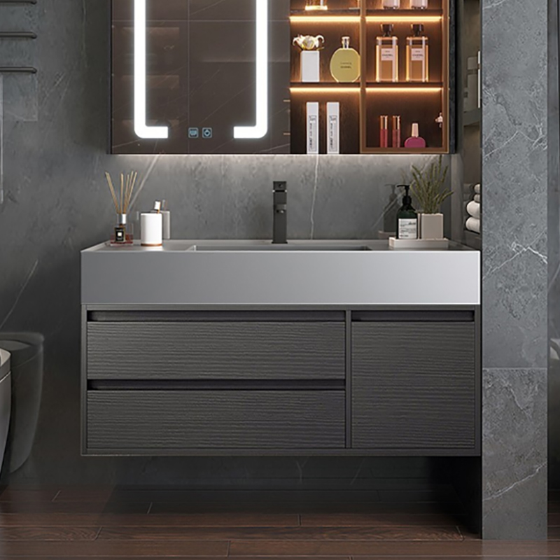 岩板一体浴室柜实木现代简约轻奢卫生间吊柜大理石洗漱台洗脸盆洗手台盆柜组合套装