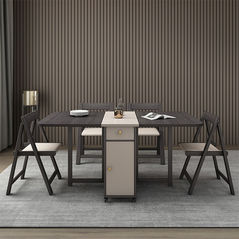 现代简约折叠餐桌椅组合多功能吃饭桌子长方形餐桌
