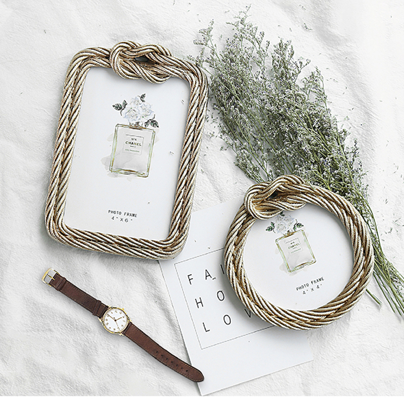 北欧设计金色麻绳相框创意复古相架婚纱照相框摆件