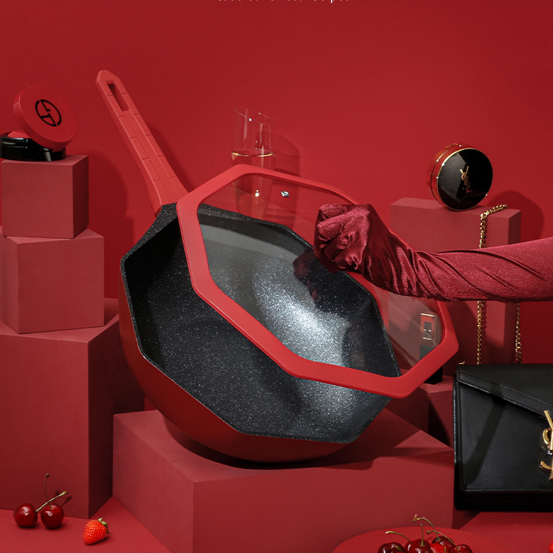 家用麦饭石八角炒锅不粘锅平底锅炒菜锅锅具套装