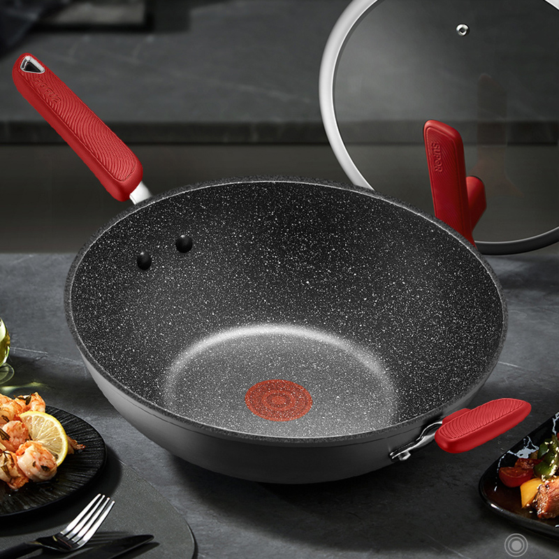 苏泊尔家用不粘锅炒锅麦饭石色平底不粘炒菜锅电磁炉燃气通用