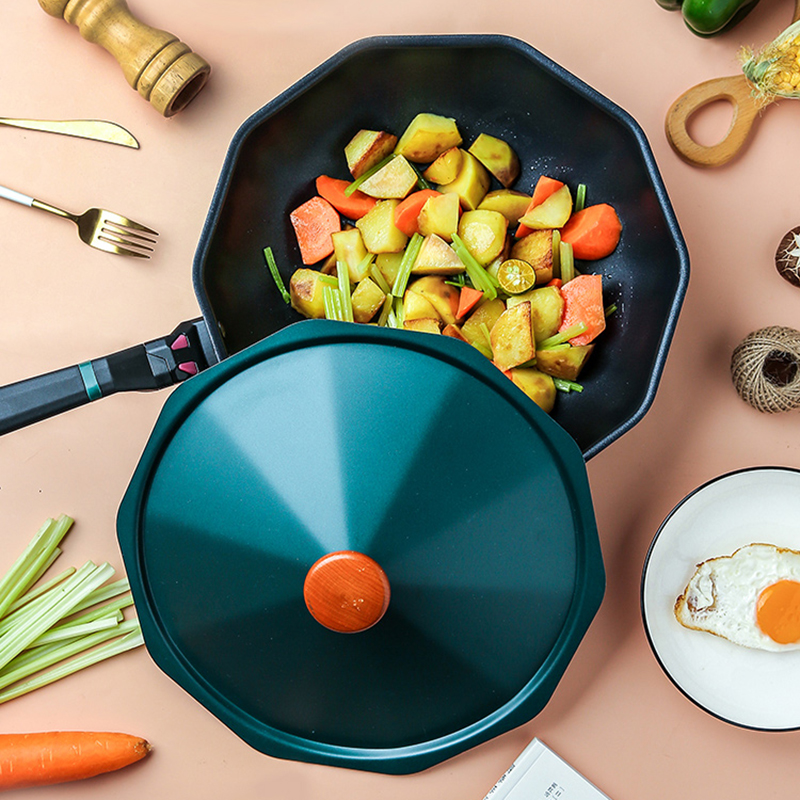 家用十角锅不粘锅麦饭石炒锅平底锅炒菜锅电磁炉燃气灶通用