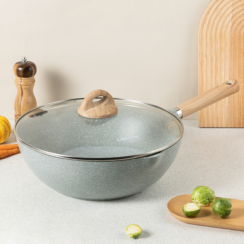 卡罗特家用麦饭石不粘锅炒锅炒菜锅平底锅电磁炉燃气灶