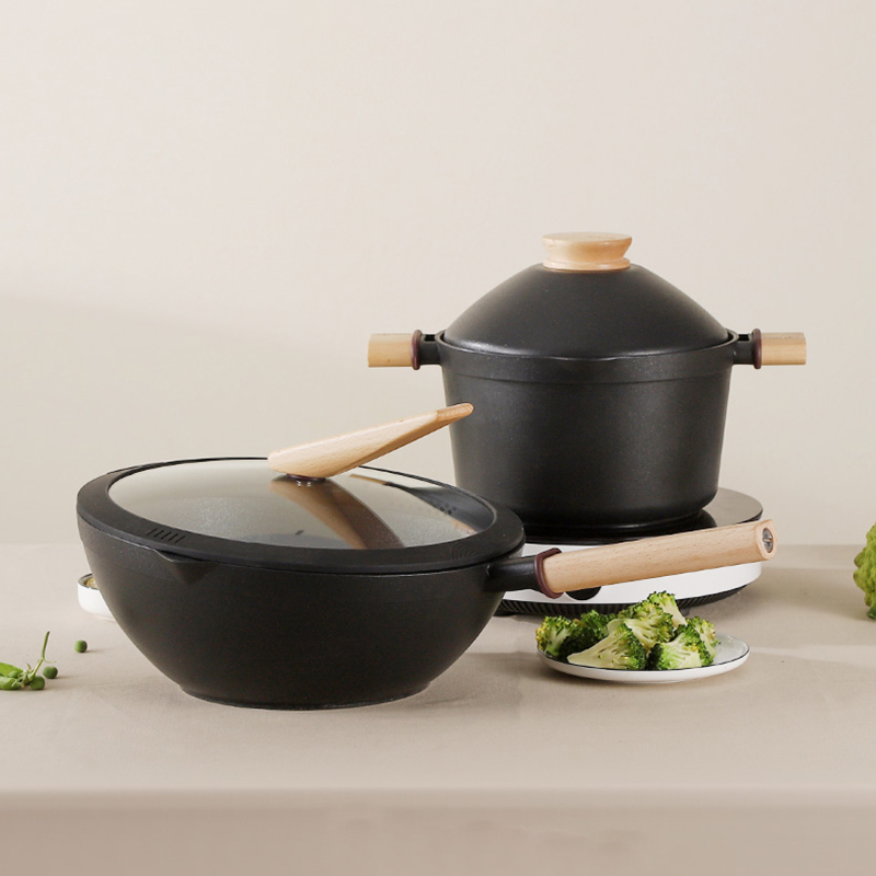 炒锅不粘锅两件套厨房烹饪锅具套装电磁炉适用