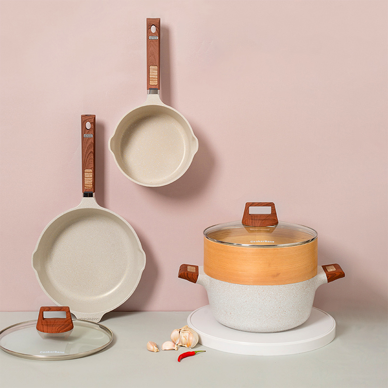家用麦饭石锅具套装全套烹饪组合不粘锅三件套