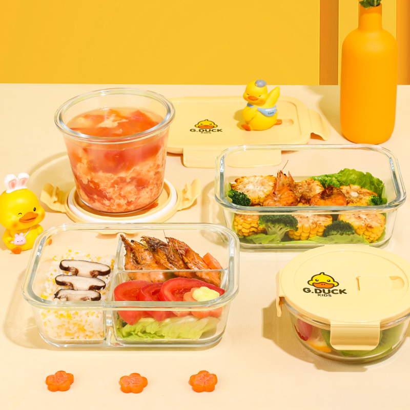 小黄鸭玻璃饭盒微波炉加热专用碗带饭餐盒保鲜盒汤杯