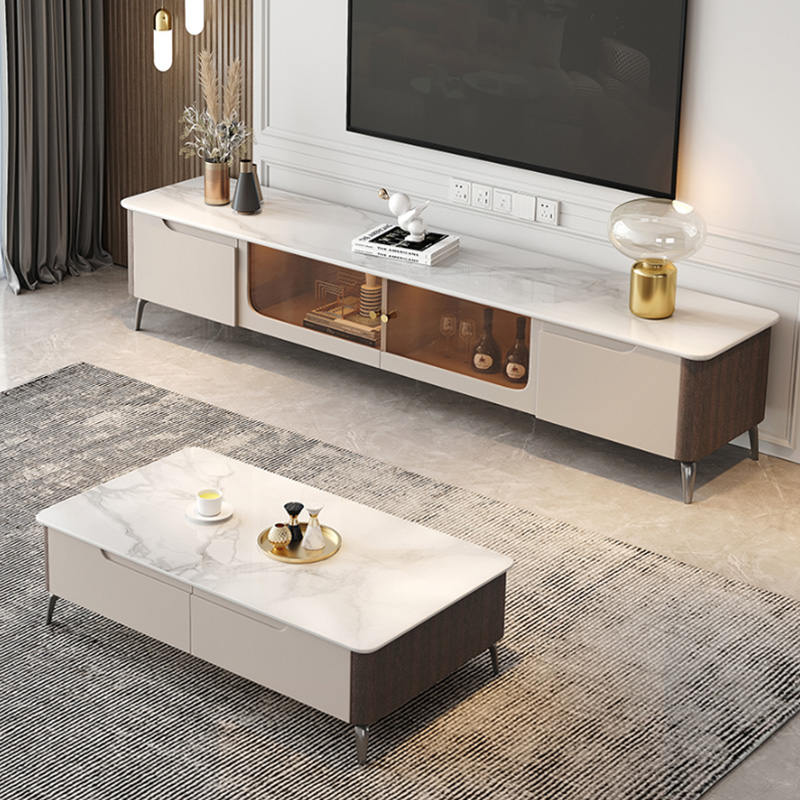 轻奢电视柜茶几组合现代简约客厅地柜岩板电视柜钢化玻璃电视柜