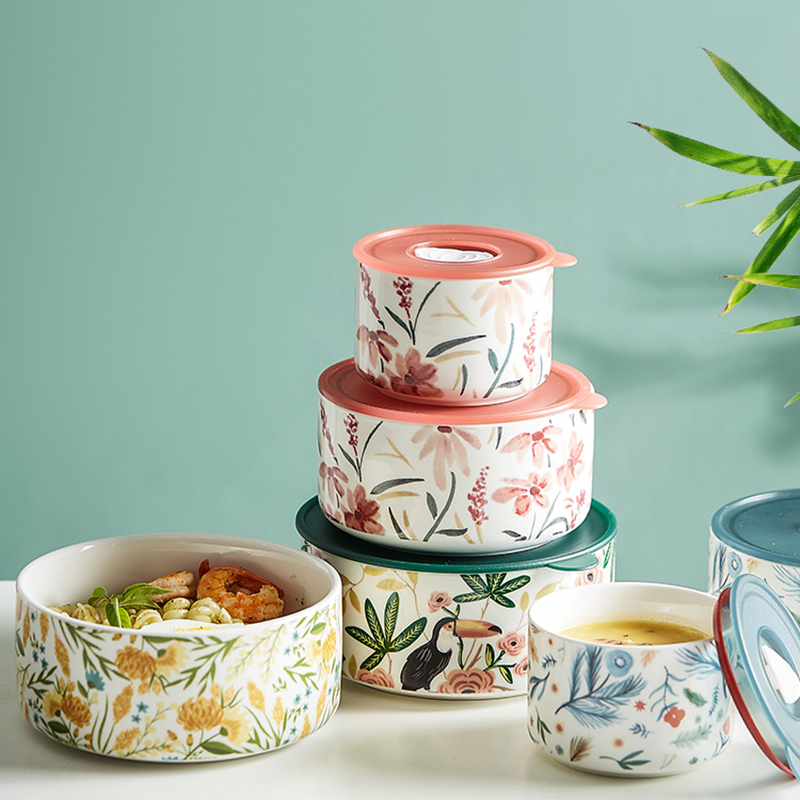 冰箱保鲜密封便当盒饭盒上班族便携带盖子陶瓷汤碗微波炉加热专用