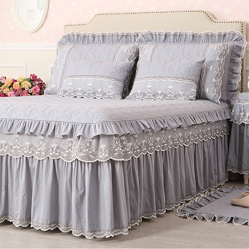夹棉加厚床罩床裙式灰色防滑纯棉全棉欧式裙式床套