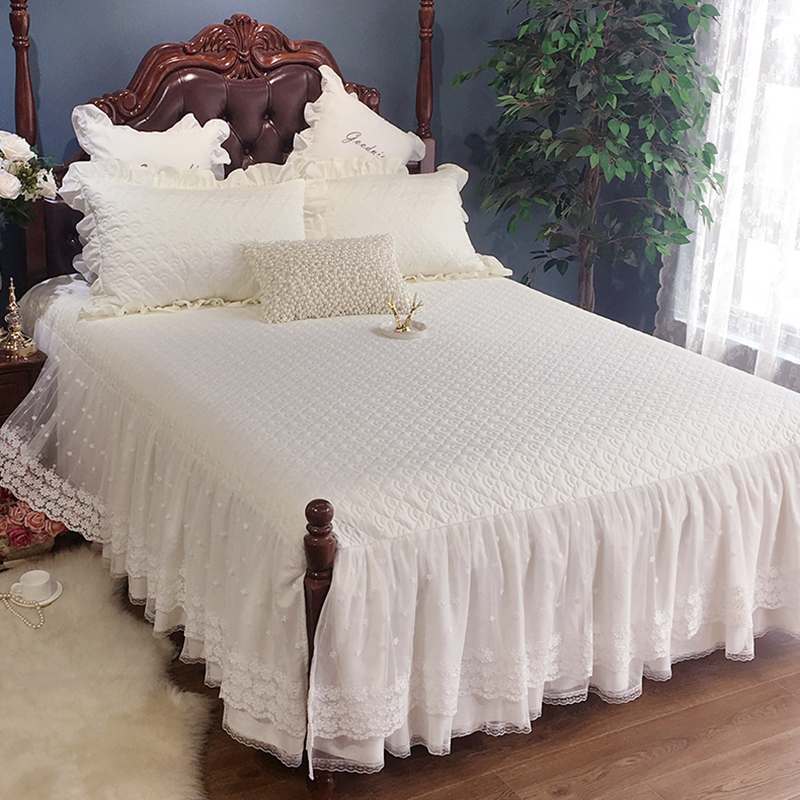 轻奢纯棉床单套防尘白色蕾丝加厚欧式床罩床裙