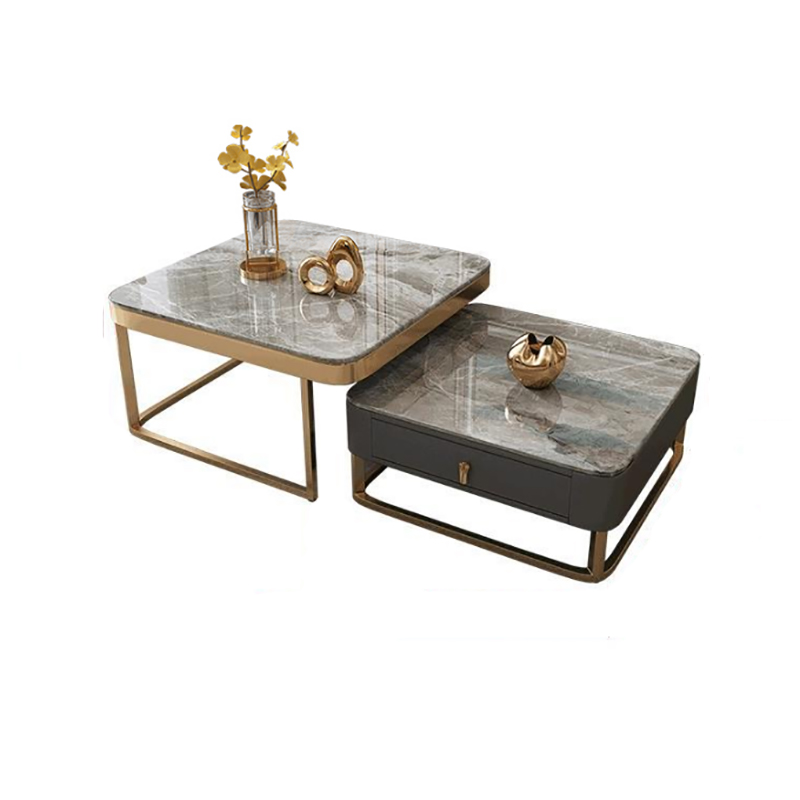 轻奢亮光岩板茶几电视柜组合小户型客厅可伸缩茶几钢化玻璃小茶几