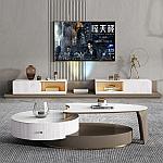 轻奢茶几电视柜组合简约小户型客厅家具椭圆形可伸缩岩板创意茶几