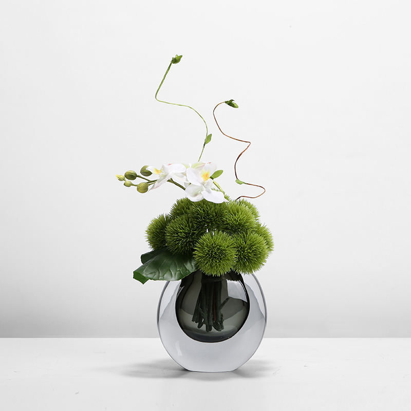 新中式简约现代绿色仿真绿植蝴蝶兰花艺插花洽谈桌茶几餐桌