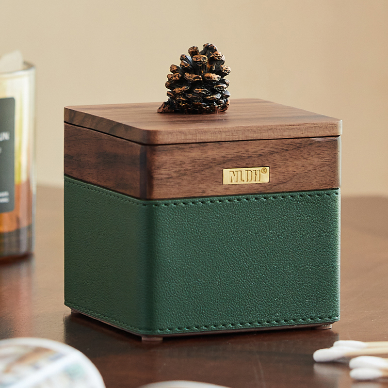 黑胡桃木棉签盒轻奢实木化妆品发卡皮筋口红桌面带盖收纳盒