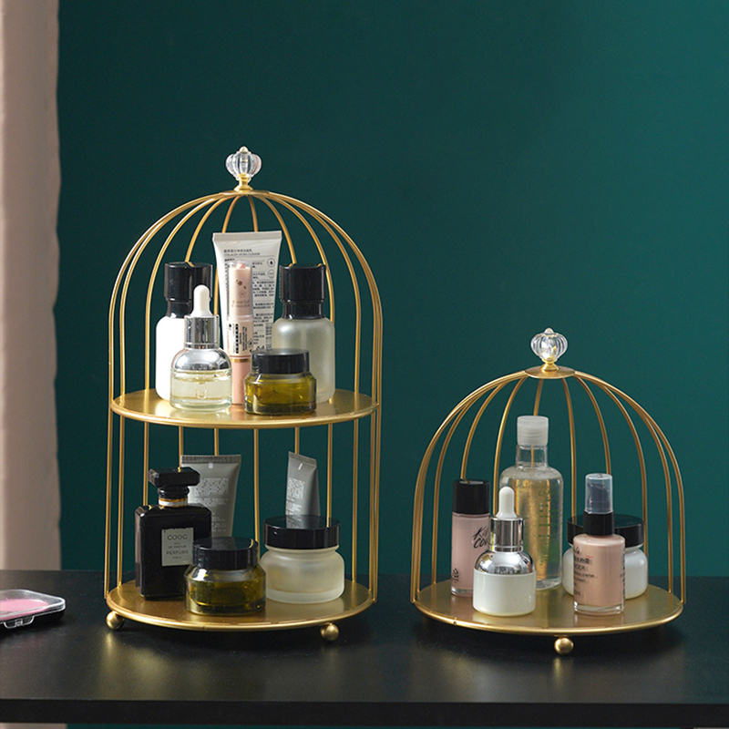 铁艺鸟笼口红香水护肤品整理置物架桌面梳妆台化妆品收纳盒