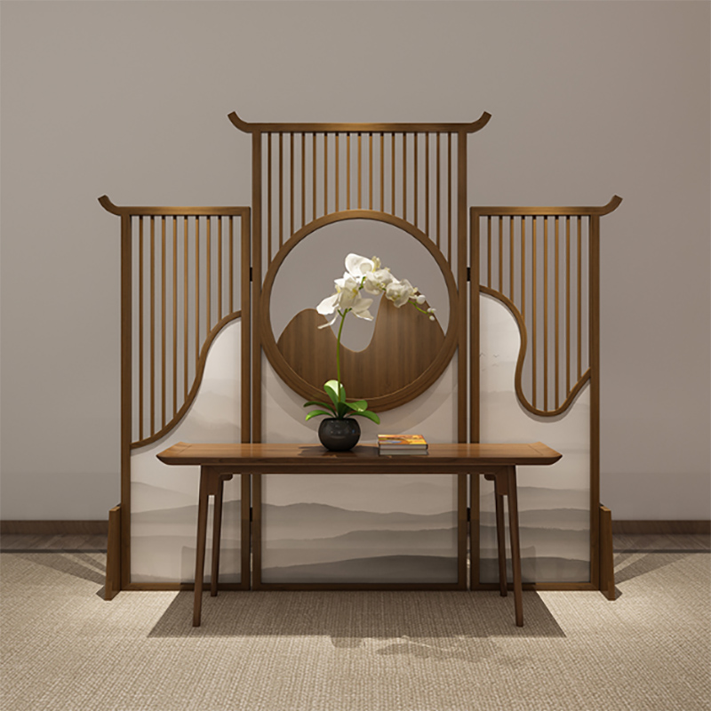屏风隔断墙新中式客厅进门遮挡分隔神器可移动实木圆形山水座屏