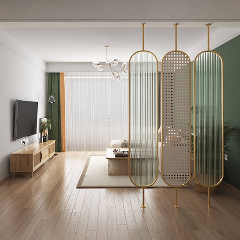 北欧旋转钢化玻璃隔断铁艺屏风客厅玄关不锈钢装饰