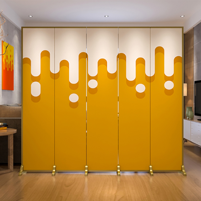 现代轻奢简约橙色颜色系屏风隔断办公室背景墙免打孔双面不透定制