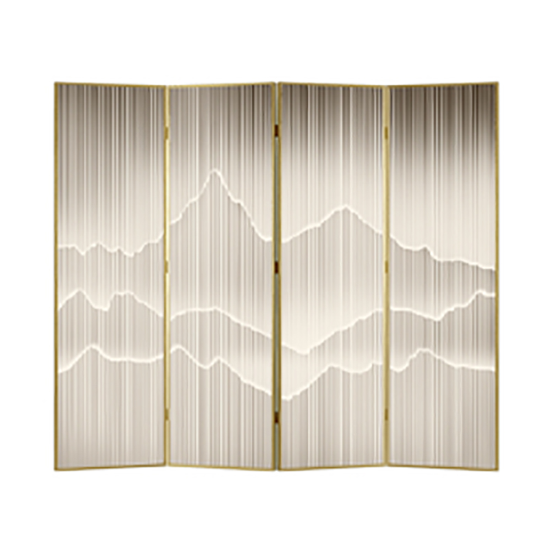 轻奢艺术屏风隔断仿铁艺灯带折叠可移动酒店大堂高档金属屏风定制