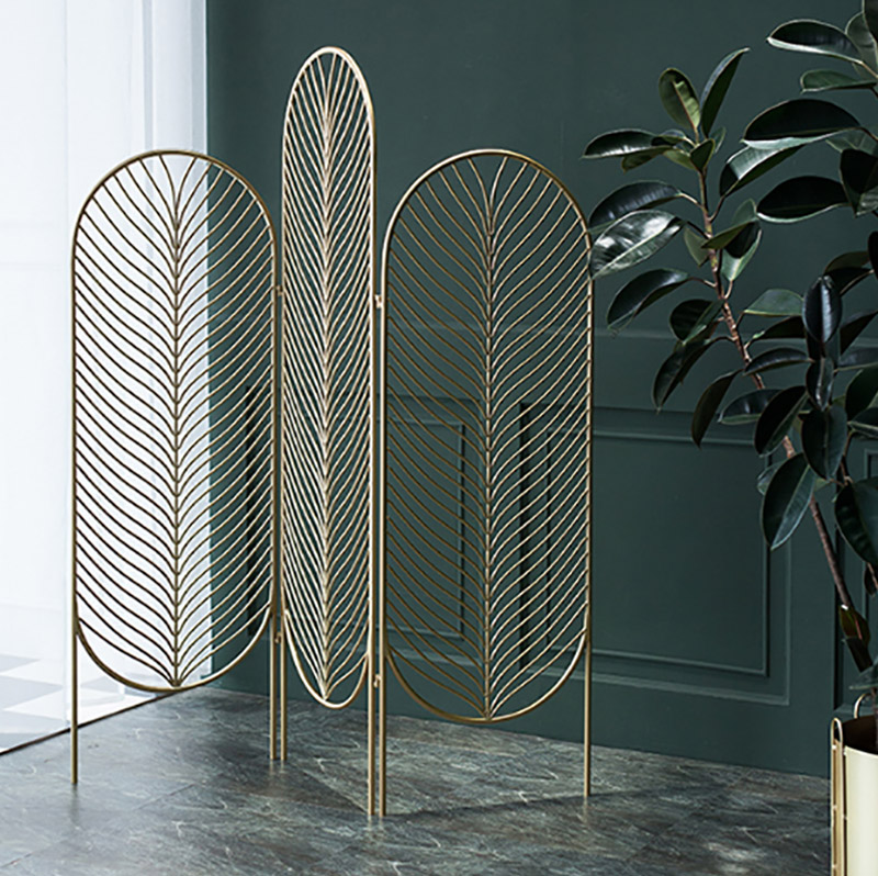 屏风折叠移动简约现代入户轻奢金色铁艺屏风创意隔断装饰折屏