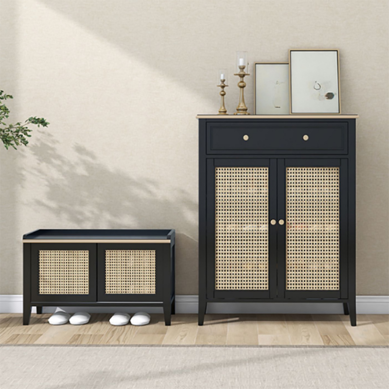日式鞋柜实木家用大容量玄关柜藤编透气靠墙收纳柜