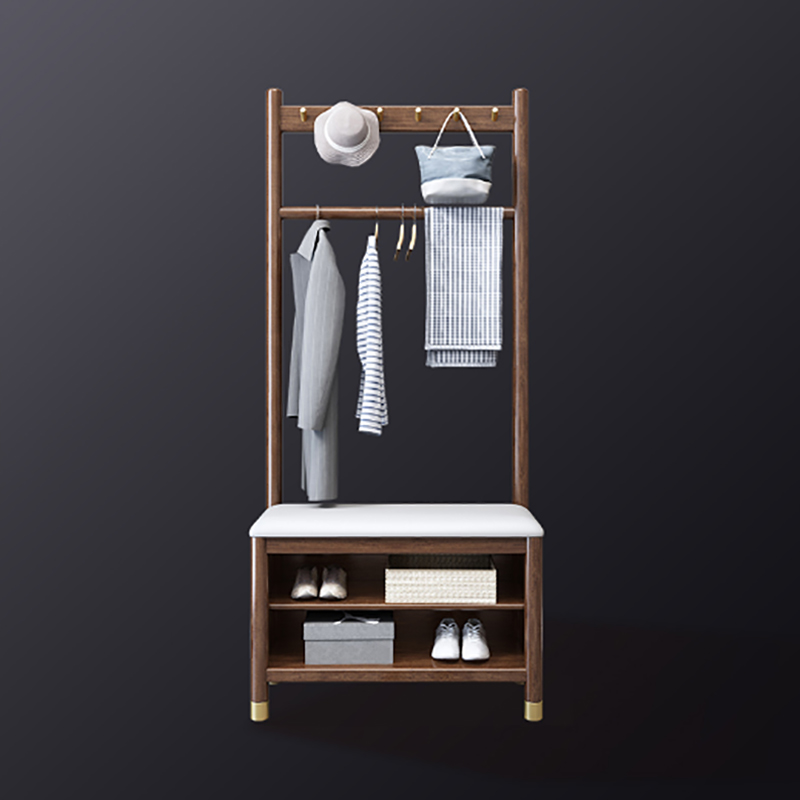 新中式实木鞋柜胡桃木进门轻奢小户型客厅入户衣帽架一体换鞋凳子