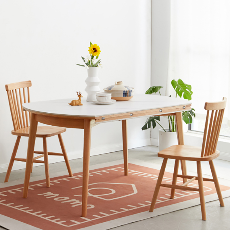 实木岩板折叠餐桌椅子组合现代家用橡木小户型饭桌可变圆桌