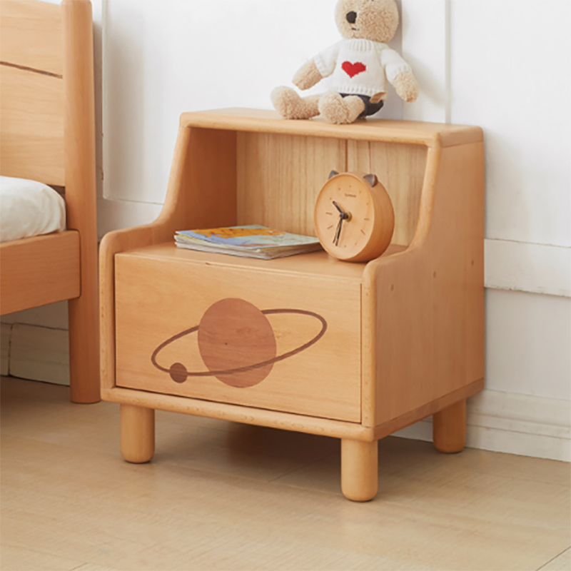 全实木儿童床头柜简约卡通星球床边柜欧洲榉木卧室储物收纳柜