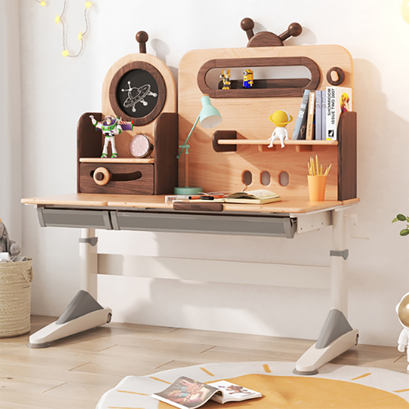 儿童实木学习桌小学生护童写字书桌可升降收纳书架组合套装