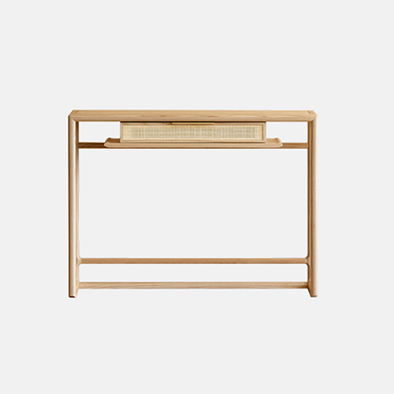 新中式玄关实木桌子置物架柜靠墙藤编条案