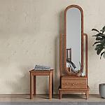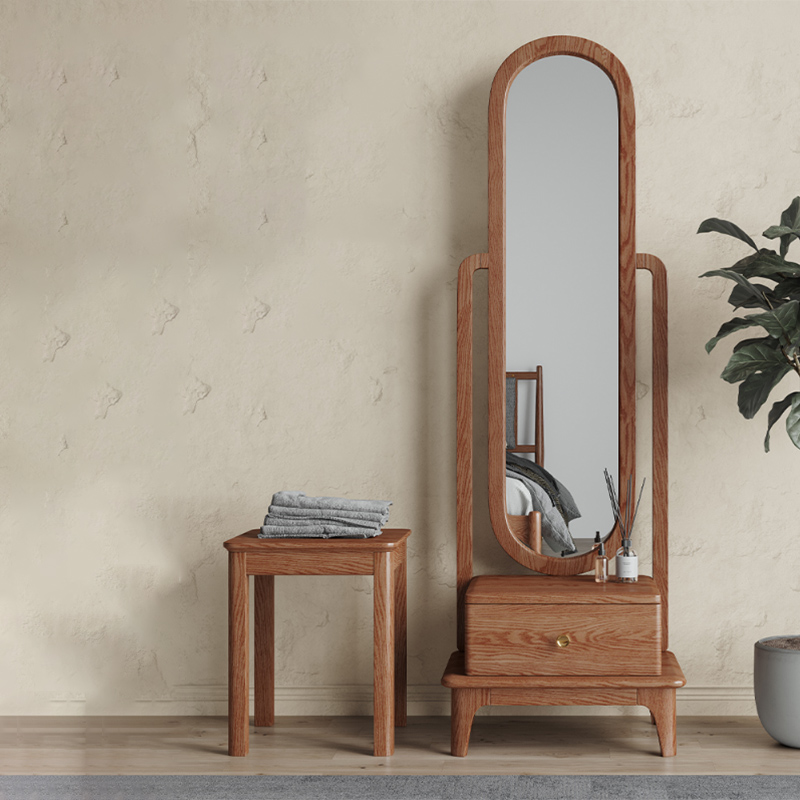 北欧实木穿衣镜落地镜全身试衣镜现代家用卧室换衣镜带抽屉储物柜