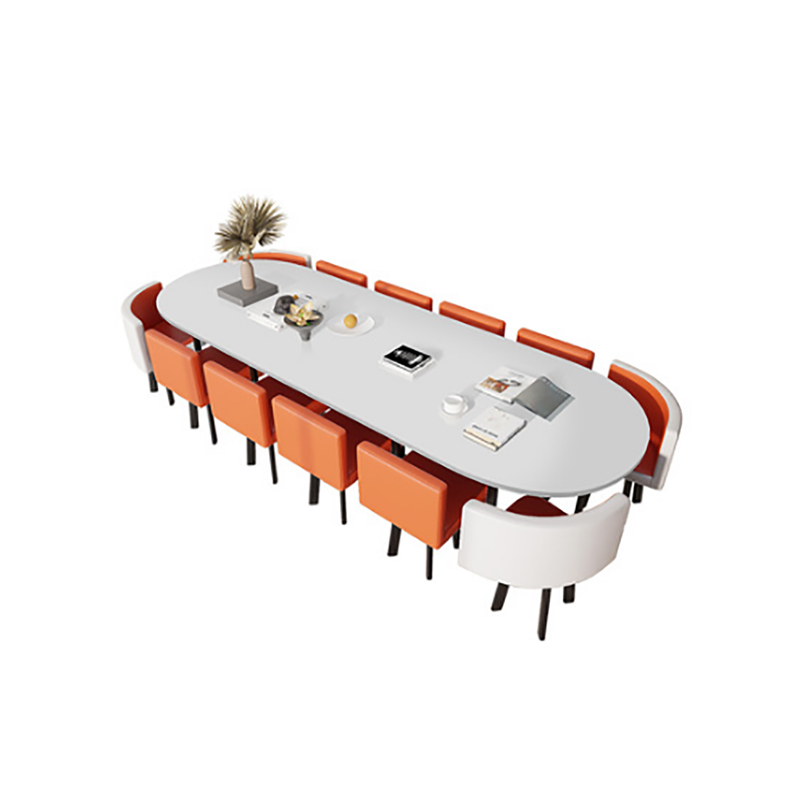 椭圆形白色会议桌简约现代长条桌子桌椅组合