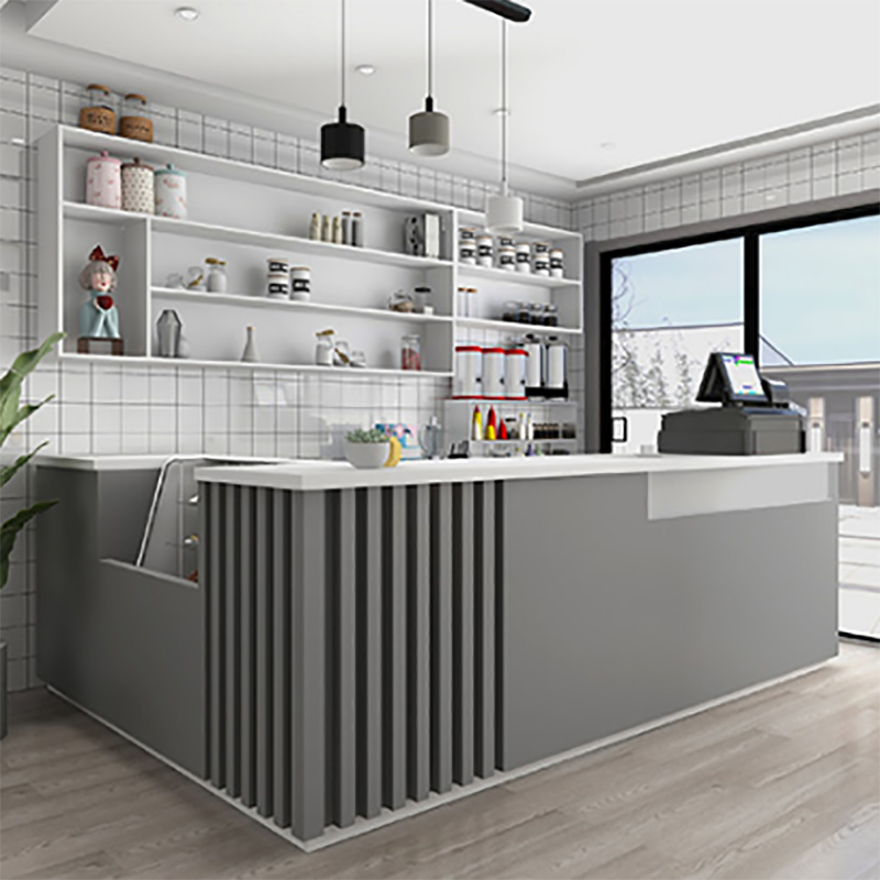 简约奶茶店咖啡厅民宿餐饮店水果店操作吧台收银台前台桌转角定制