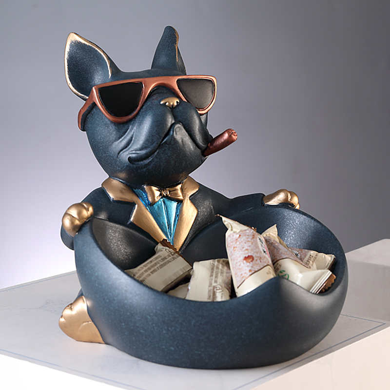 玄关收纳盒简约创意斗牛犬摆件客厅桌面杂物收纳盘