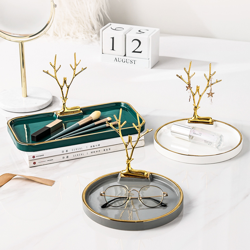 化妆品收纳盒轻奢创意桌面摆件首饰架子置物盘