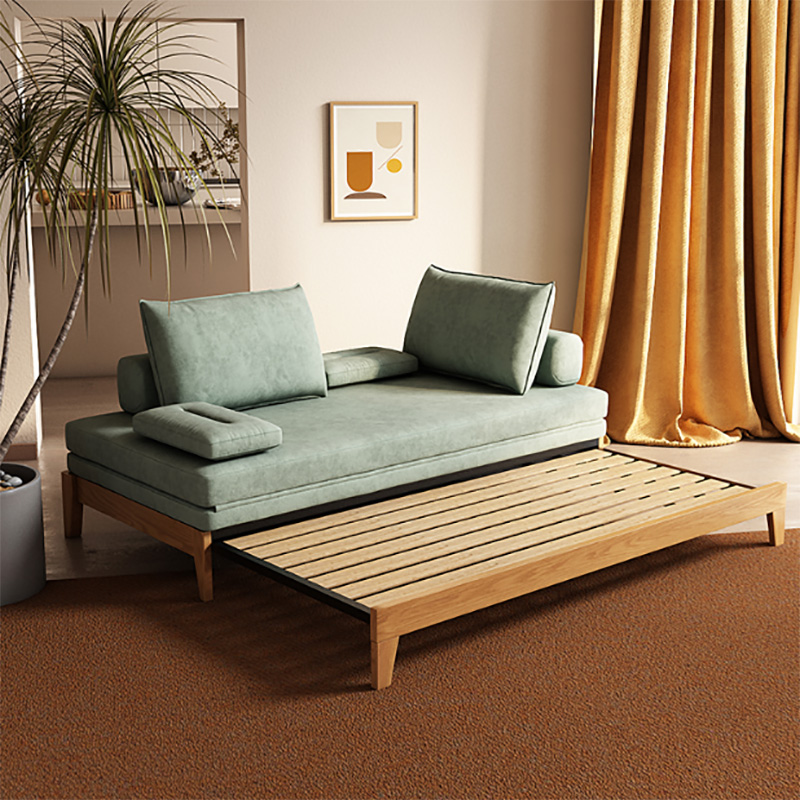 小户型实木沙发床两用折叠伸缩双人北欧多功能单人推拉床