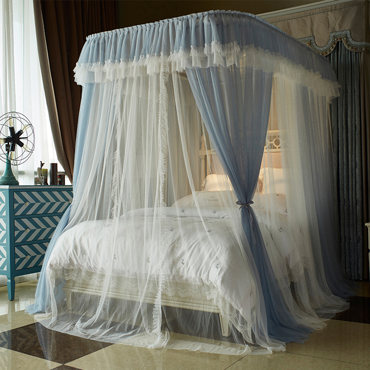 家用轨道支架床帘一体床幔公主风落地纹帐