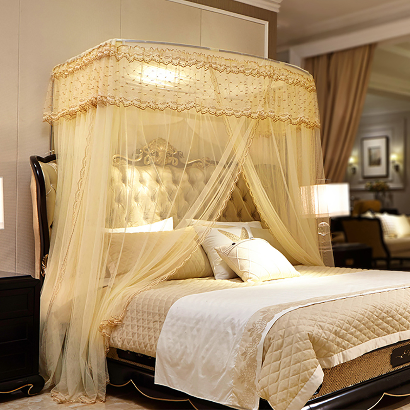 钓鱼竿伸缩蚊帐家用三开门加厚支架宫廷落地式