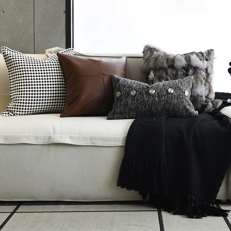 轻奢高档客厅沙发抱枕靠枕皮毛毛绒高级感靠背垫套